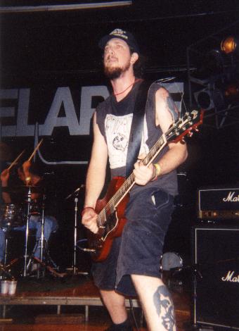 Victoria: I've been drawing/painting since I was a little girl. Sometimes I would paint pictures I didn't understand, only to have them make sense to me later on. Like some dreams I guess. Anyway, being able to create visuals for Damad has been a great pleasure for me, as I am now able to illustrate my feelings much easier. Pushead is such a great guy, not many make the transition of growing and still being true to themselves. We have a 7" on Bacteria Sour, and naturally loved the artwork. All of us being old fans, we were that much more pleased when he agreed to do the artwork on "Burning Cold." On the first album; "Rise and Fall", we chose to use a piece I did representing the sometimes very empty cycle of getting up from bed, going to work, getting back in bed, and so on. The prematurely aged man has his arms raised in contempt for the sun, instead of praise. A rather sad story I think many are familiar with.